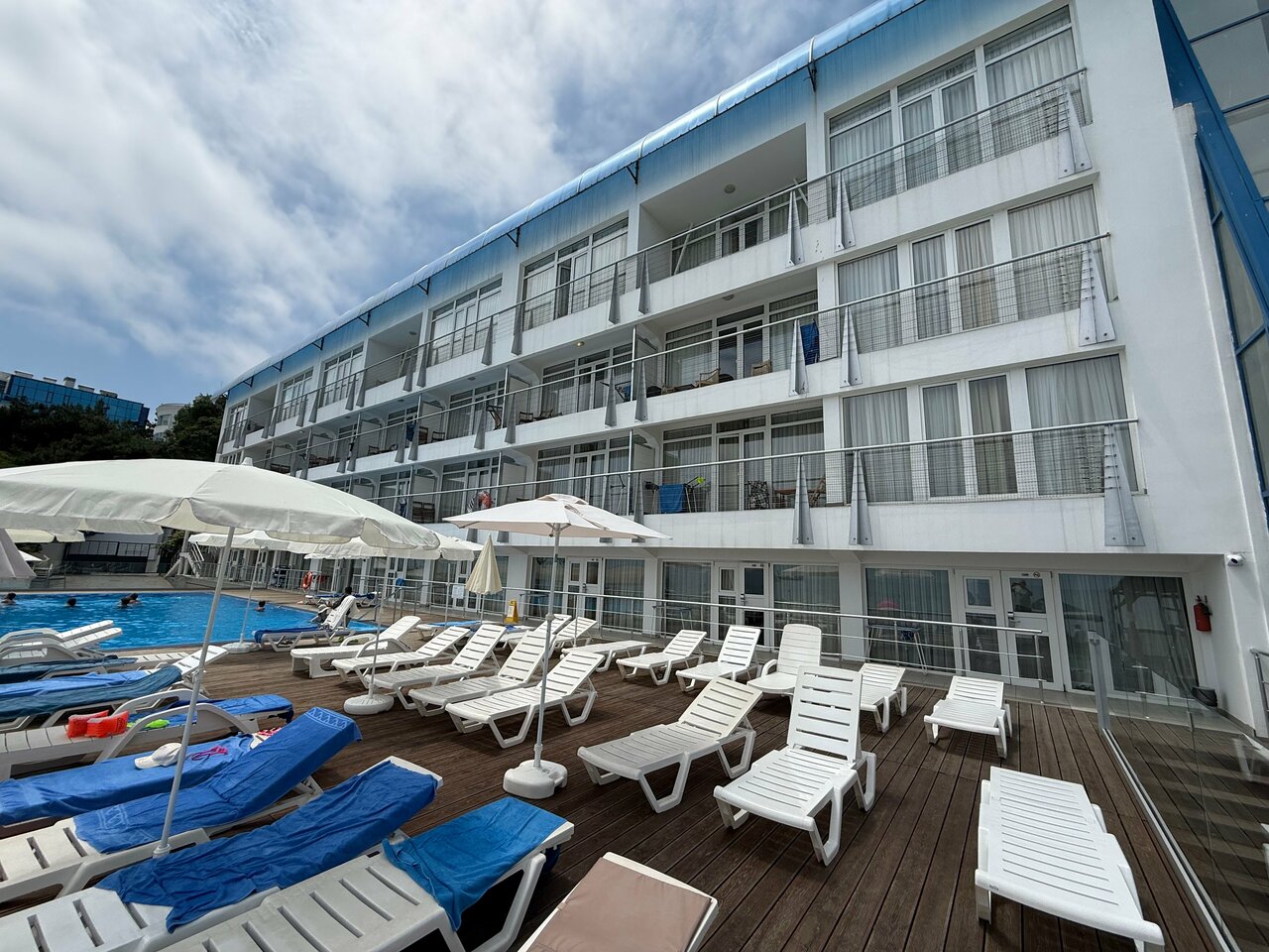 Отдыхали семьями последнюю неделю июня 2025. Реально достойный отель с превосходным соотношением цены и качества. Есть все, что нужно: доп.место ребенку в однокомнатных да и в двухкомнатных номерах, интернет, гигиенические наборы мыла и шампуней чуть ли не через день, прекрасный вид на море(ничего не загораживает с любого этажа), вкусные завтраки по шведской линии. Бассейн шикарный! В общем, для отдыха идеально. То, что нет развлечений - это не минус, а скорее плюс, так как с детьми можно поразвлечься в 5 минутах ходьбы от отеля и прийти спокойно отдохнуть в свой номер без лишних звуков и воплей). Море в 20-ти метрах от отеля - это вообще сказка!🤩 Персонал замечательный, все показывают и рассказывают доступно и не загруженно). В общем, для отдыха отель подходит идеальнее некуда!👍👍👍 Но! Есть один небольшой минус, который плюсы не перекрывает, но в этом отзыве он, наверное, больше к руководству отеля: СДЕЛАЙТЕ, ПОЖАЛУЙСТА, ЕДИНУЮ СИСТЕМУ ПРОХОДА ЧЕРЕЗ ДВЕРИ И РАЗДЕВАЛКУ С ВЫХОДАМИ К МОРЮ!!! Было бы очень кстати иметь на руке универсальный ключ-браслет, которым можно было бы и двери открывать в номера и входные в отель и все остальное. Не очень удобно толкать с собой карточку, которая может потеряться в любой момент!🥲 А так, очень рекомендую и с детьми и без детей👍